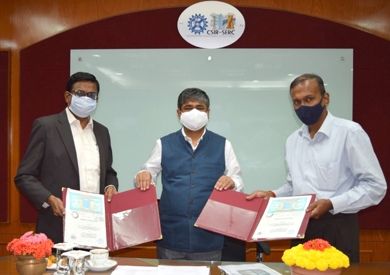New Delhi (India Science Wire): Council of Scientific and Industrial Research (CSIR)’s Chennai based constituent laboratory Structural Engineering Research Centre (SERC) has signed an agreement for licensing of technology – Portable lightweight foldable module for makeshift hospitals and other needs (PoliTal-M), with Larsen & Toubro Limited (L&T), Mumbai. The agreement was signed in the presence of Dr. Shekhar C Mande, Director General, CSIR, Prof. Santosh Kapuria, Director, CSIR-SERC, and Shri M V Satish, Whole-time Director and Senior Executive Vice President, L&T.